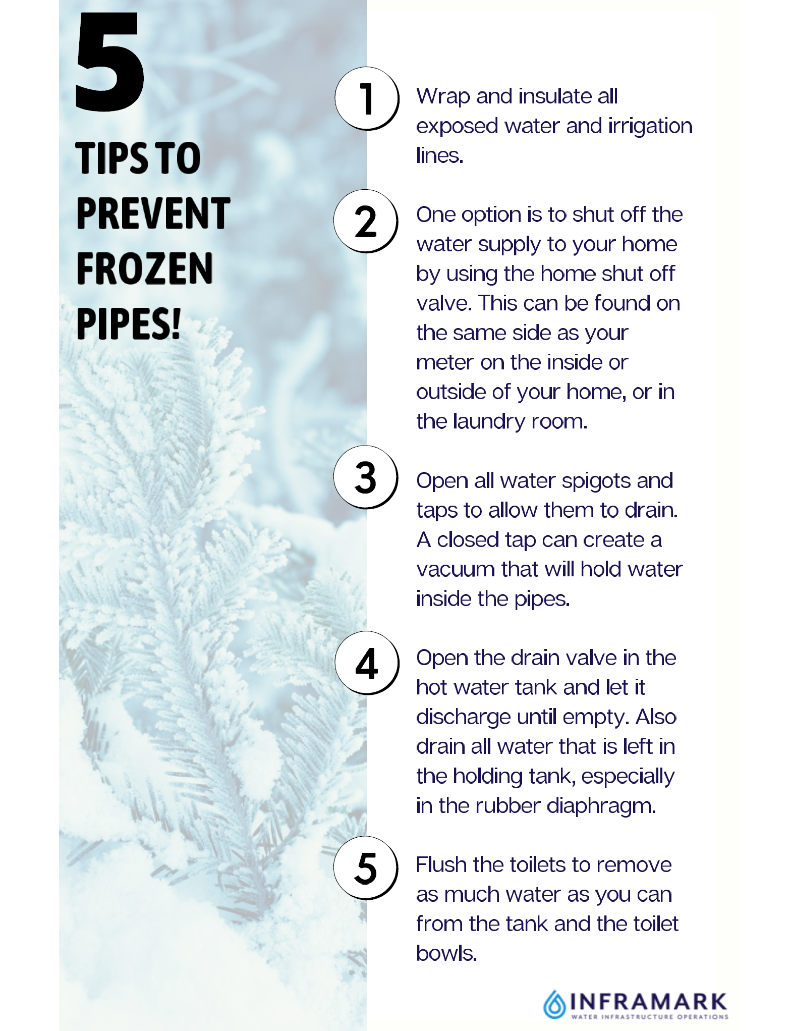 - Install insulated covers over outdoor faucets to help protect them from the cold.