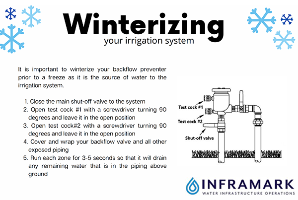 - For outdoor hoses and sprinkler systems, disconnect and drain them before freezing weather sets in.